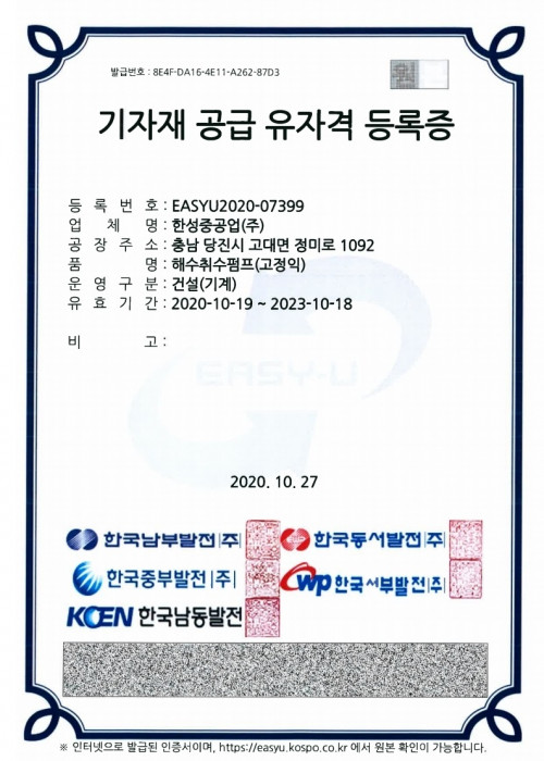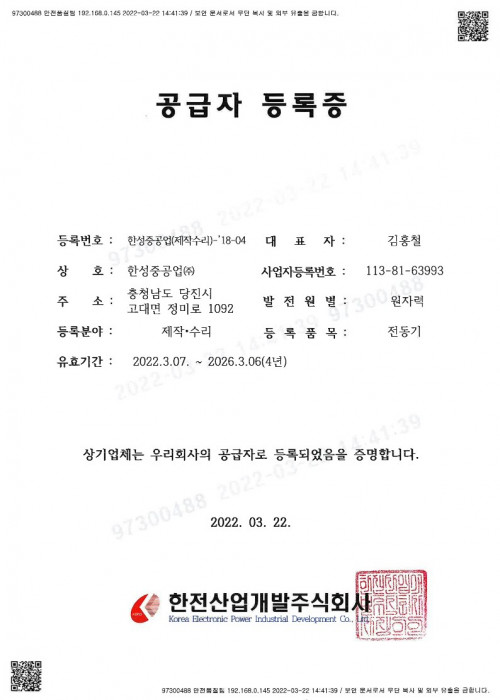HOME > 기술현황 > 인증현황 > 업체 등록 인증서