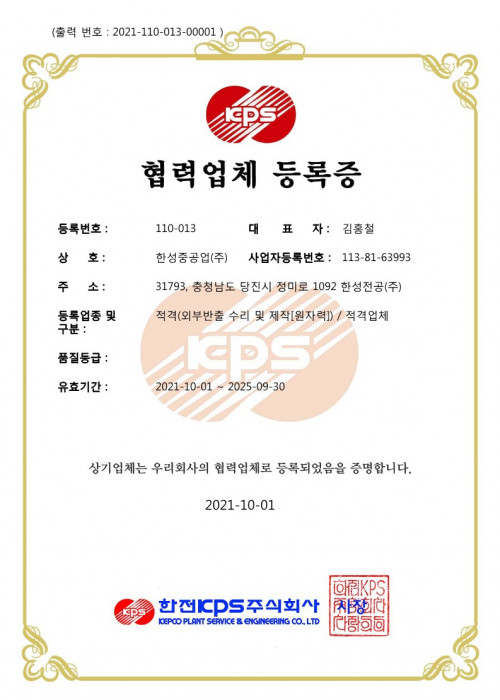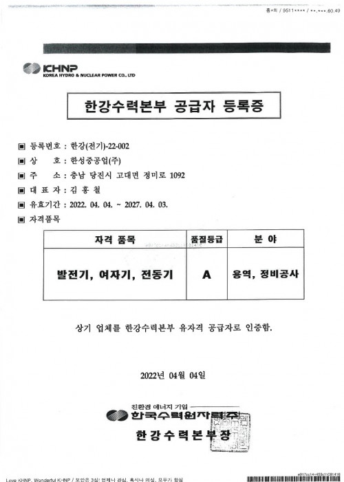 HOME > 기술현황 > 인증현황 > 업체 등록 인증서