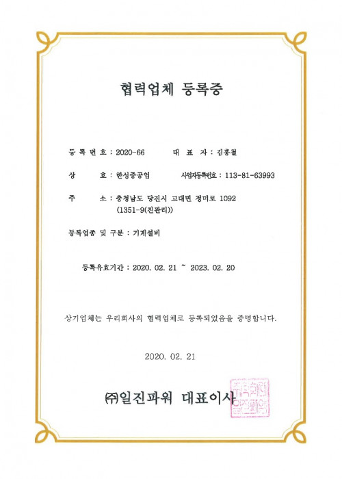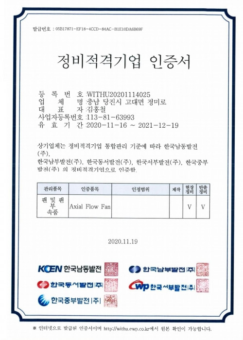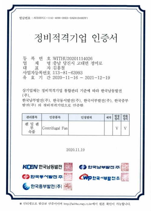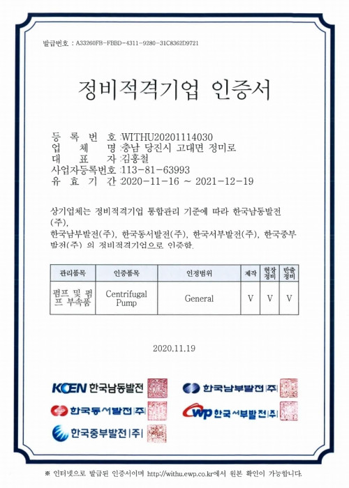 HOME > 기술현황 > 인증현황 > 업체 등록 인증서