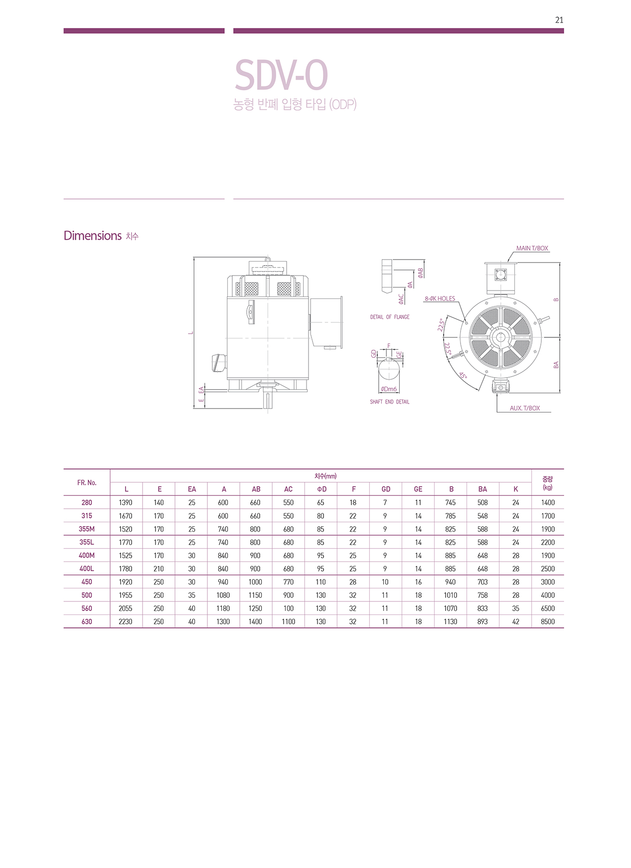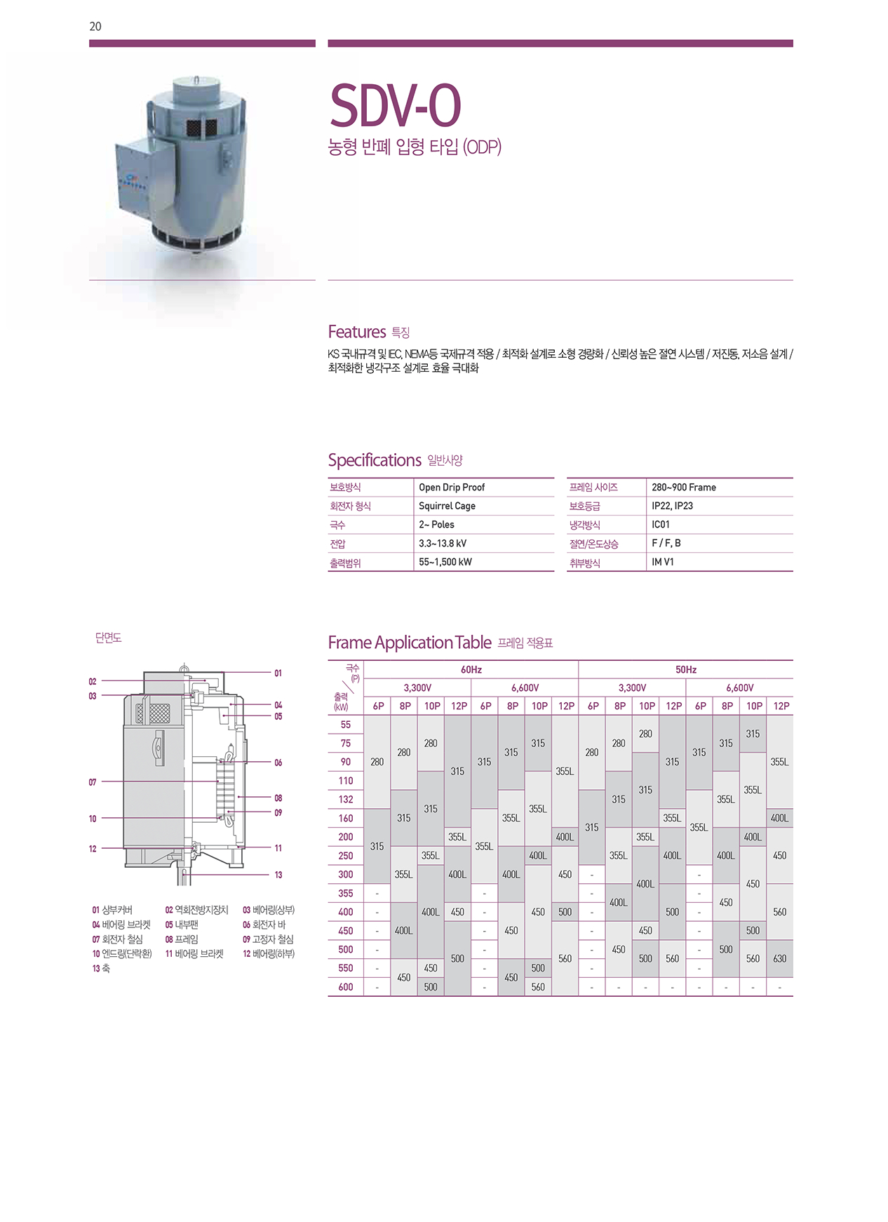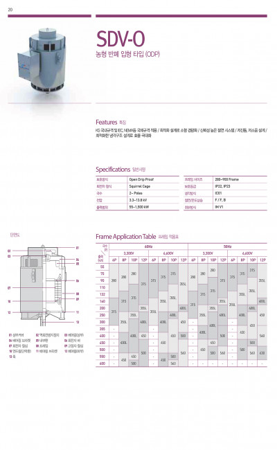 KS 국내규격 및 IEC, NEMA등 국제규격 적용 / 최적화 설계로 소형 경량화 / 신뢰성 높은 절연 시스템 / 저진동, 저소음 설계 / 최적화한 냉각구조 설계로 효율 극대화