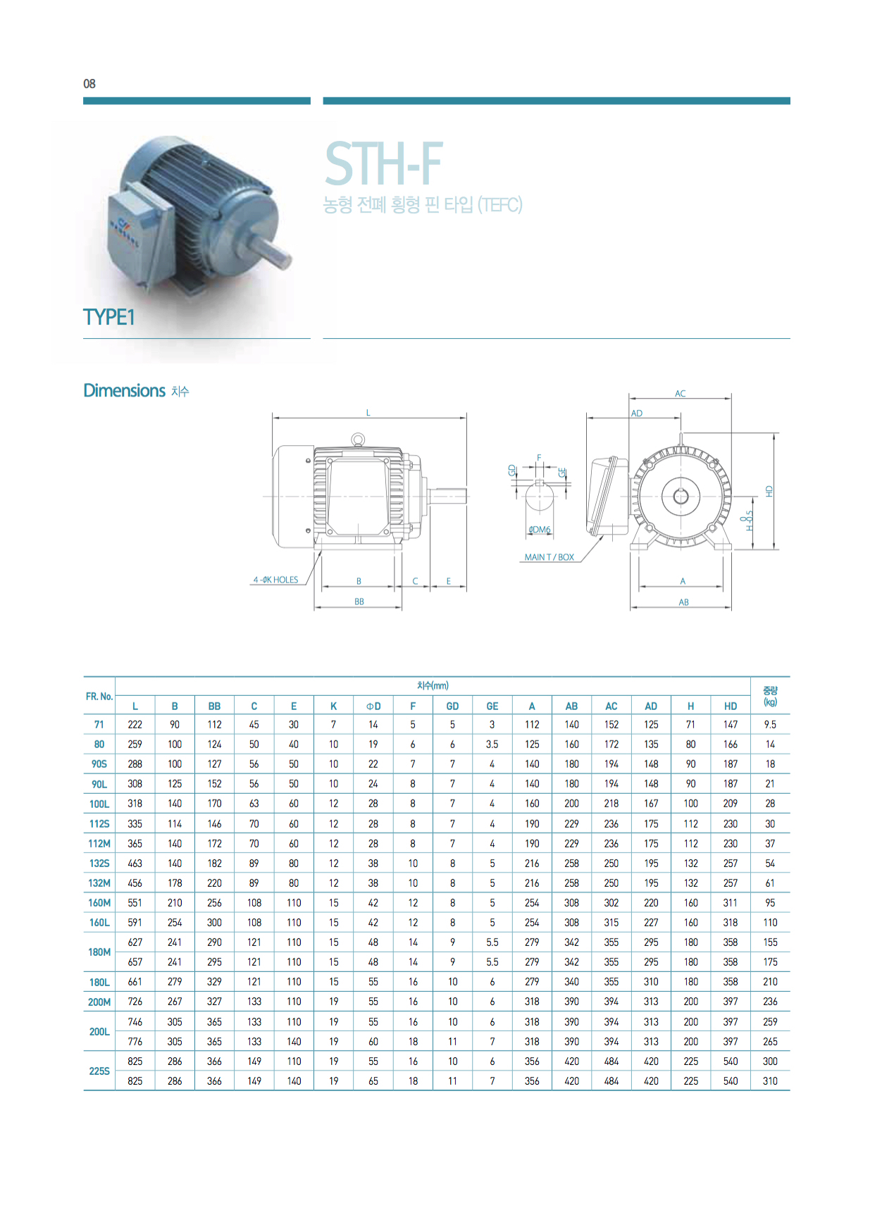 STH-F | 농형전폐횡형핀타입(TEFC)